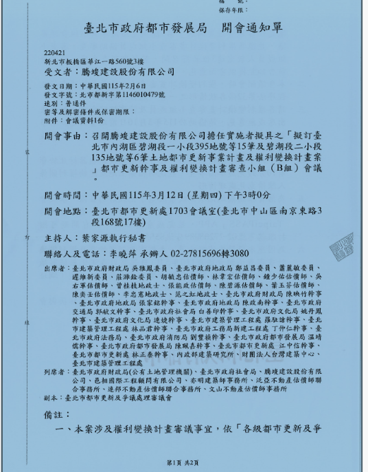 會議地點:臺北市都市更新處1703會議室